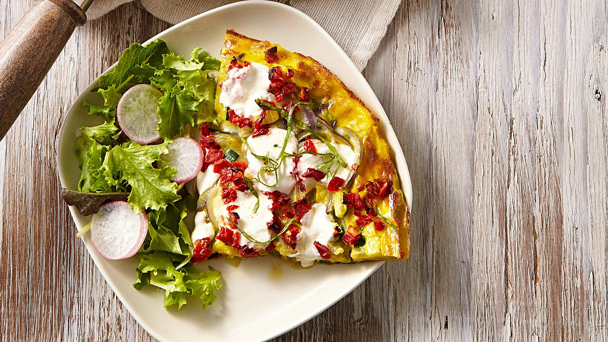 - Whisk eggs, paprika and the remaining ¼ teaspoon salt and pepper in a large bowl. Add the vegetables to the egg mixture; gently stir to combine. Wipe the pan clean; add the remaining 1 tablespoon oil and heat over medium heat. Pour in the egg mixture and top with cheese. Cover and cook until the edges are set and the bottom is brown, 4 to 5 minutes.