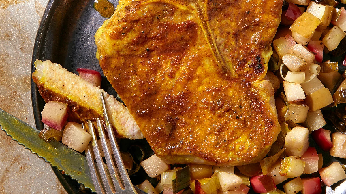 Curried Pork Chops With Apples & Leeks