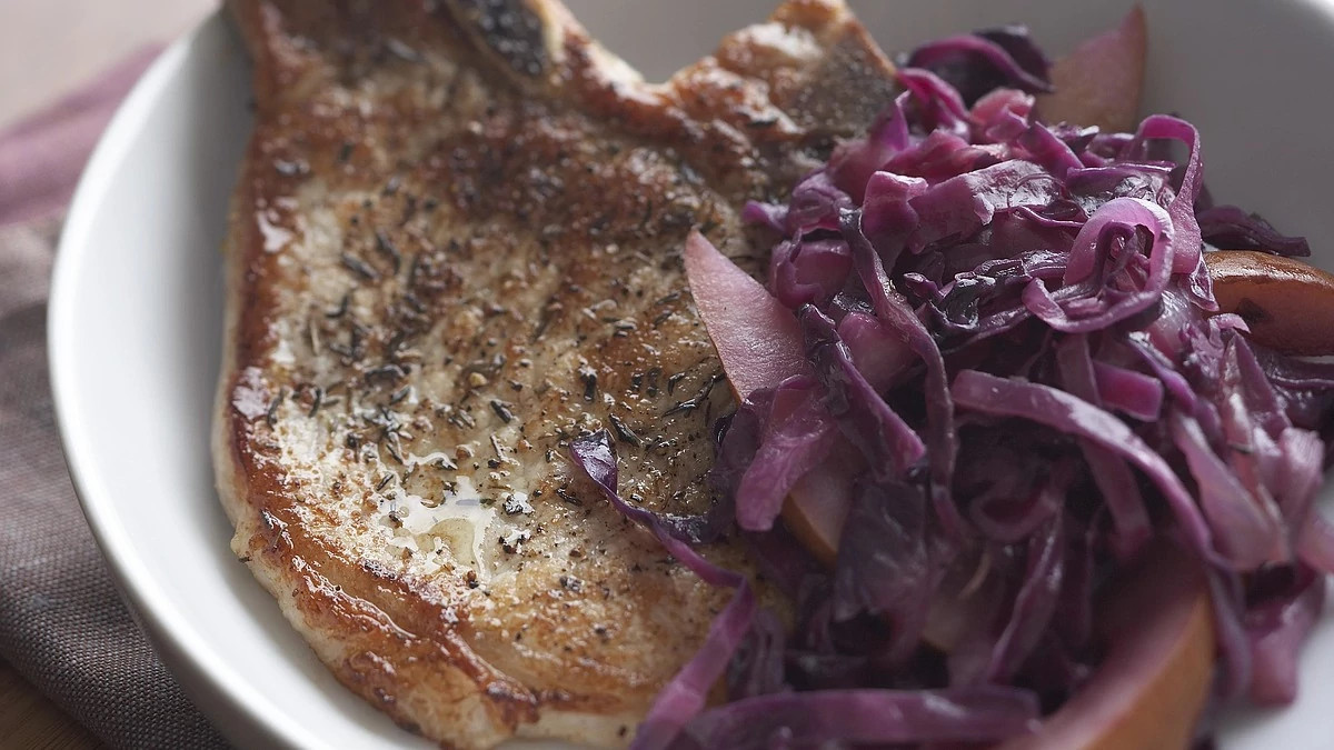 Pork Chops With Red Cabbage and Pears